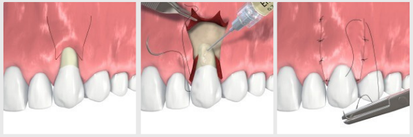 Mint minden fogorvosi-parodontológiai kezelés, az ínyplasztika is helyi érzéstelenítéssel kezdődik. Ezután megtörténik a szituációnak megfelelő lebenyképzés. A graftanyag behelyezése után a lebenyt finom varratokkal rögzítjük. Amennyiben a szájpadlásból történt a graft kivétele, úgy a szájpadlásra egy sebvédő pakolás kerül rögzítésre.
